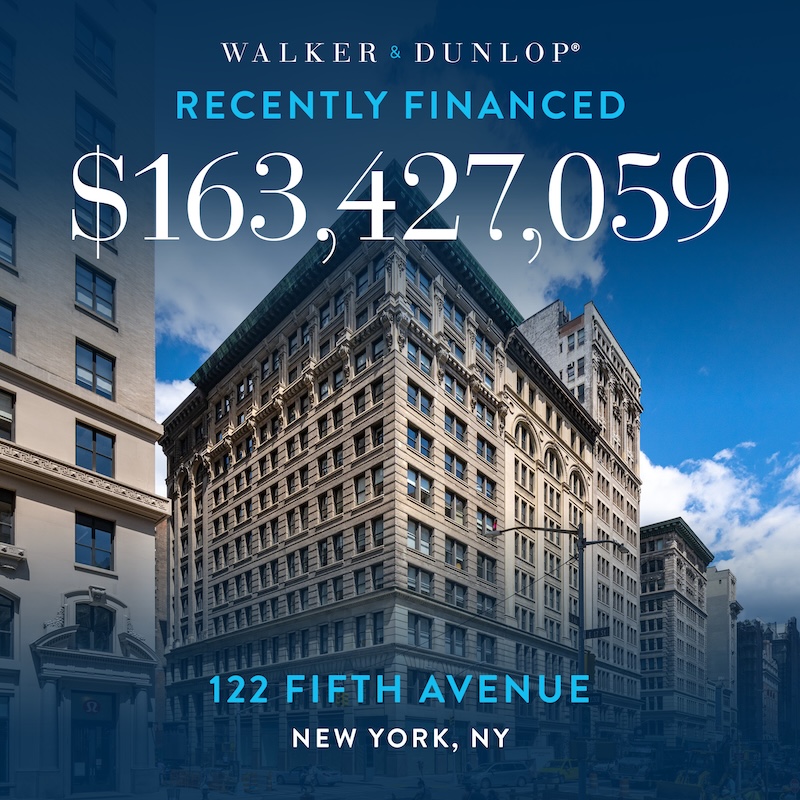 Walker & Dunlop Capital Markets Institutional Advisory recently arranged a $163,427,059 permanent loan to refinance 122 Fifth Avenue, a 278,000-square-foot, Class A mixed-use office and retail property located in Manhattan’s Flatiron District.